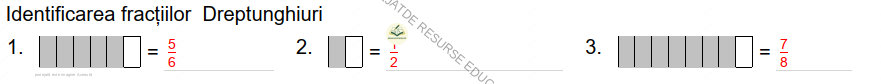 •Identificarea fracțiilor: Exerciții de colorat și numit părțile dintr-un întreg.