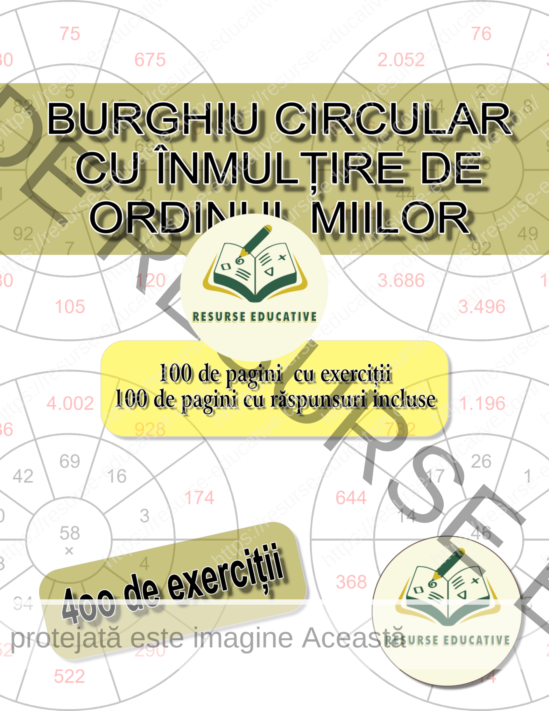 Fișe PDF PREMIUM pentru exersarea înmulțirii numerelor de ordinul miilor, prin metoda burghiului circular, cu exerciții și autocorectare.