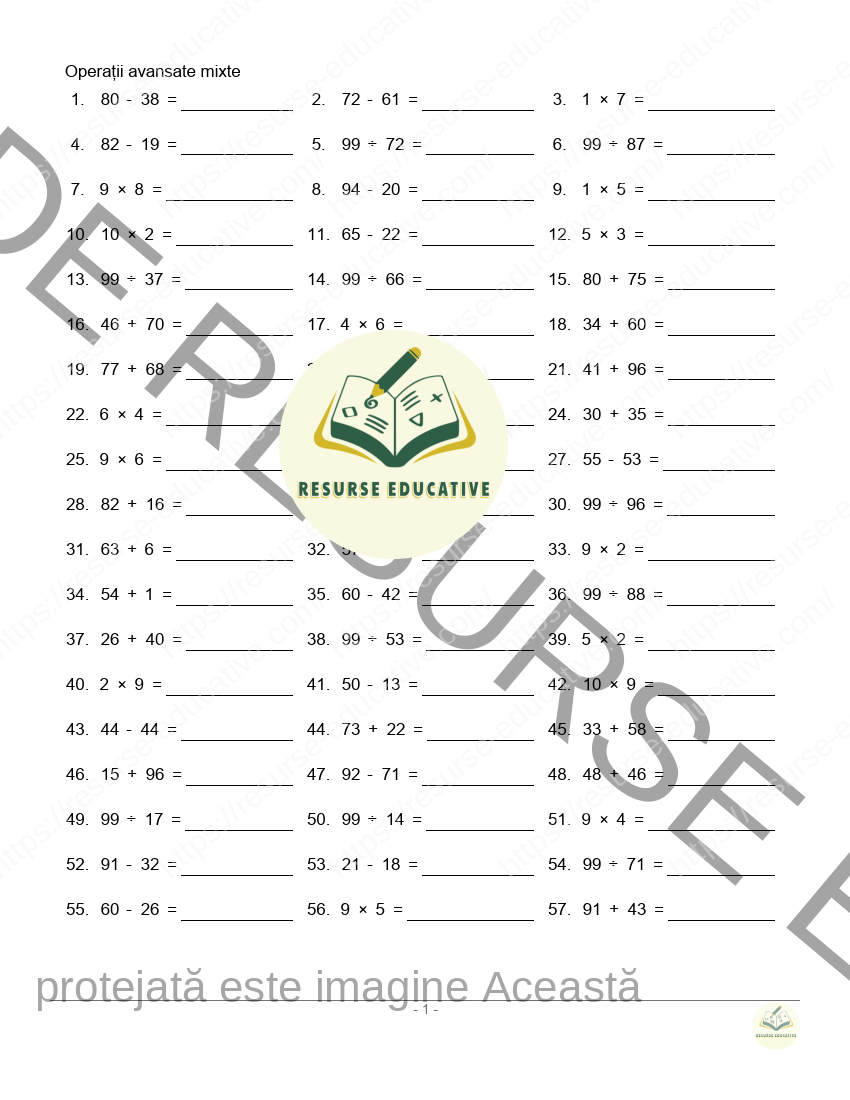 Ești în căutarea unui material eficient pentru a consolida cunoștințele de matematică ale copilului tău? Îți prezentăm fișa noastră gratuită de Operații Avansate Mixte până la 100, un instrument didactic esențial pentru a stăpâni calculul cu numere în intervalul 0-100!